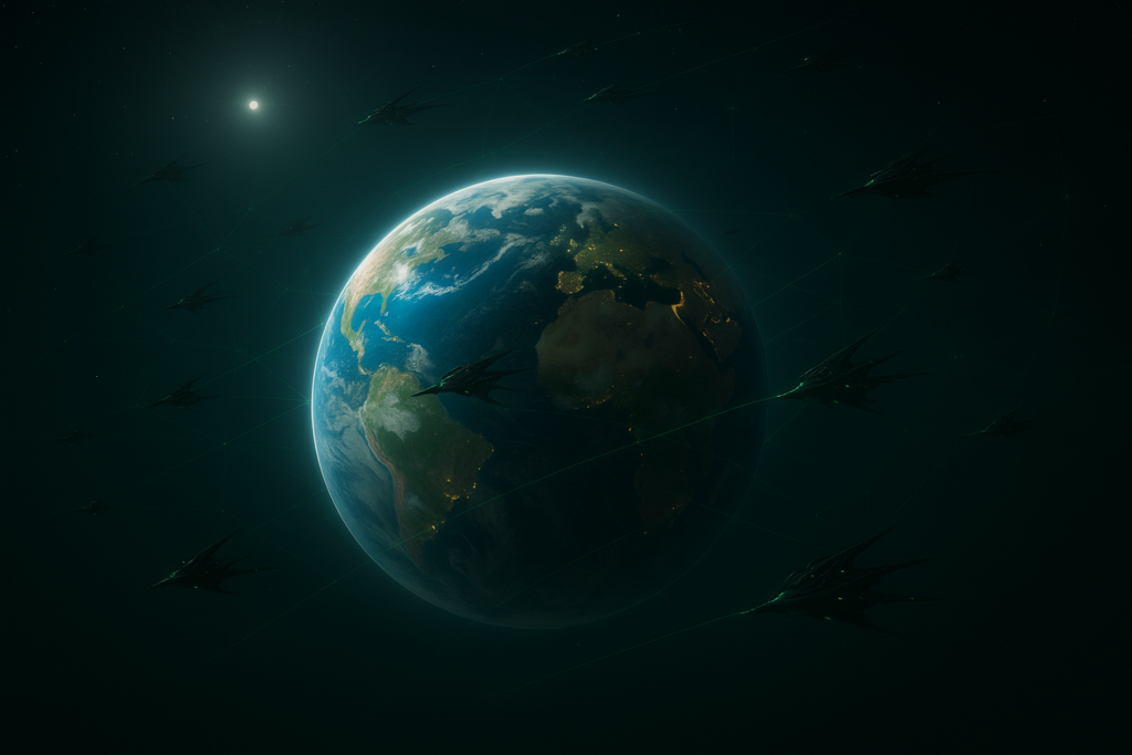 Dorrin stood in the command chamber of Khor-Vael, its vaulted ceiling alive with shifting streams of light projected from orbiting satellites overhead. The latest task was complete: a swarm of reconnaissance probes had departed Mars orbit, sleek obsidian darts launched in silence. By design, they were nearly invisible—small, cold, and quick, their engines shielded to prevent detection. In just twenty-three Earth days, they would slip unseen into position around the blue planet, each probe dividing its watchful gaze across cities, oceans, and lands. For the first time, Acheli eyes would see Earth in its entirety, every detail recorded, every broadcast parsed.